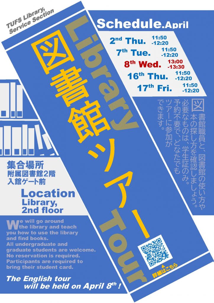 4/8(水) 13:00 ~ 13:30 ※英語による案内も開催