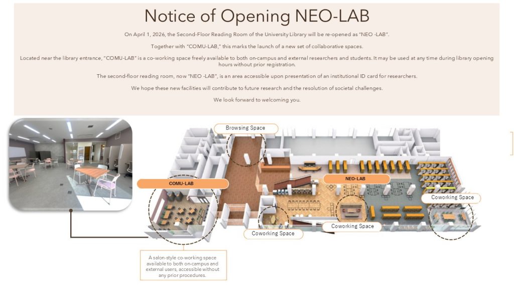 On April 1, 2026, the Second-Floor Reading Room of the University Library has been re-opened as “NEO -LAB”.